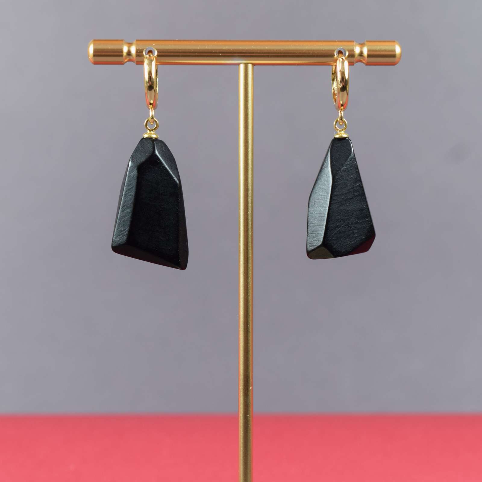 Geometriška forma pabrėžia šiuolaikišką dizainą, o paauksuoti lankelio tipo užsegimai suteikia elegancijos ir komforto. Šie auskarai puikiai dera tiek prie minimalistinio, tiek prie išraiškingesnio įvaizdžio – dienai ar vakarui.