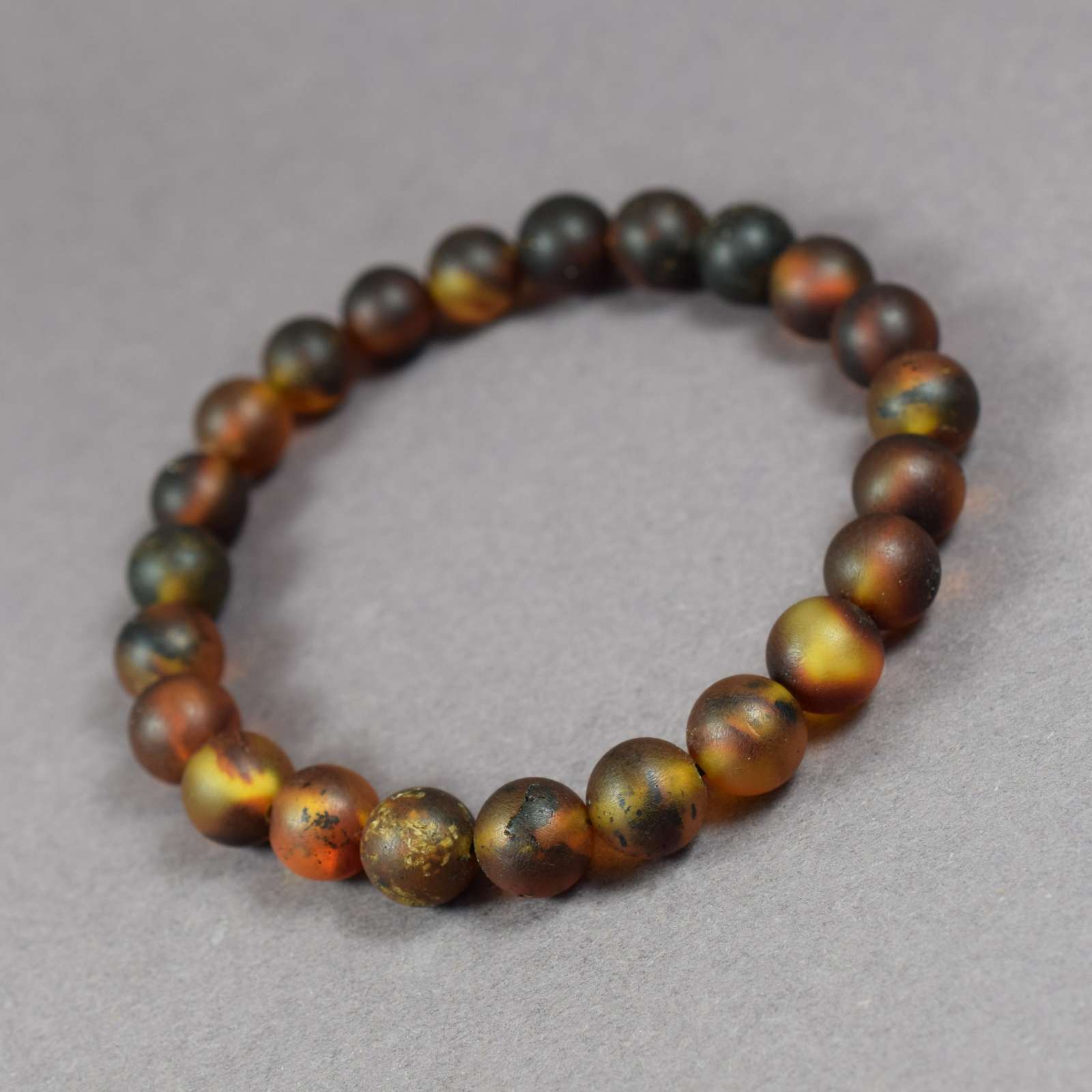 Natūralaus grožio gintarinė apyrankė „Miško dvasia“ – tai autentiškas ir charakteringas papuošalas, įkvėptas gamtos. Apyrankė suverta iš matinio, įvairiaspalvio gintaro karoliukų, kuriuose susipina tamsūs, žemės ir šilti medaus atspalviai.