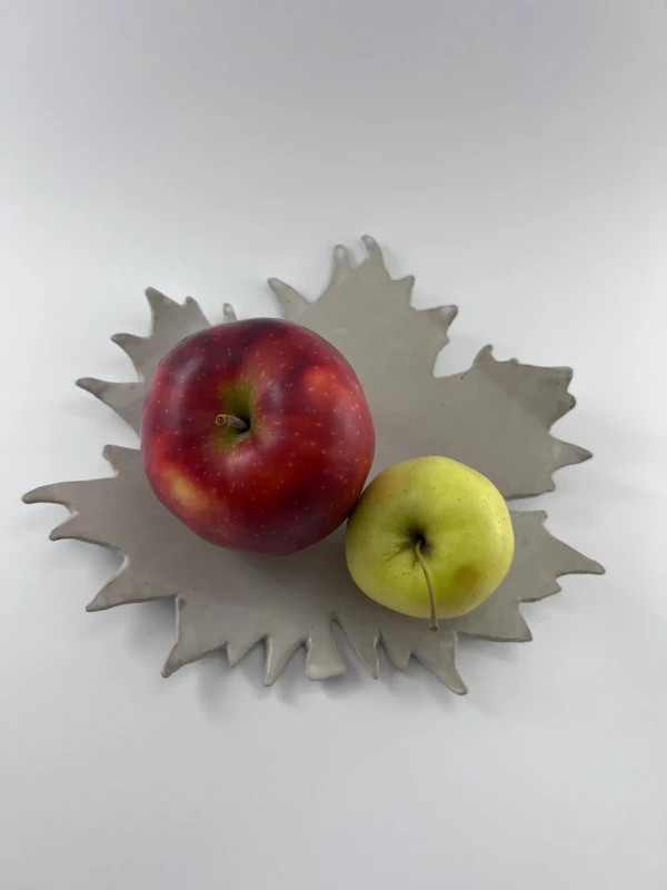 Pilka rankų darbo užkandžių lėkštė - klevo lapas