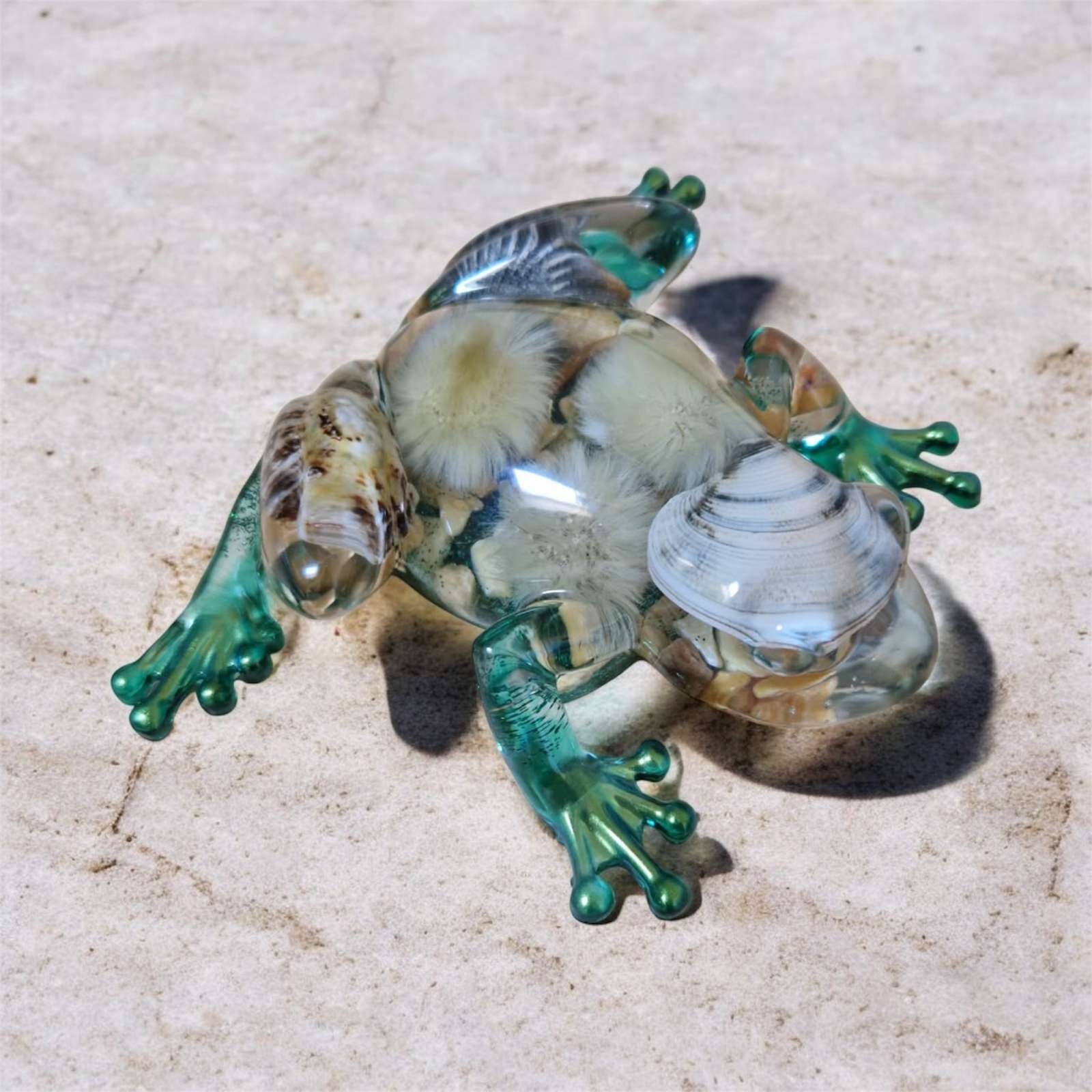 Rankų darbo kūrinys iš epoksido, kurio viduje įamžinti įvairiausi dekorai - gėlės, akmenukai, šakelės ir t.t.
