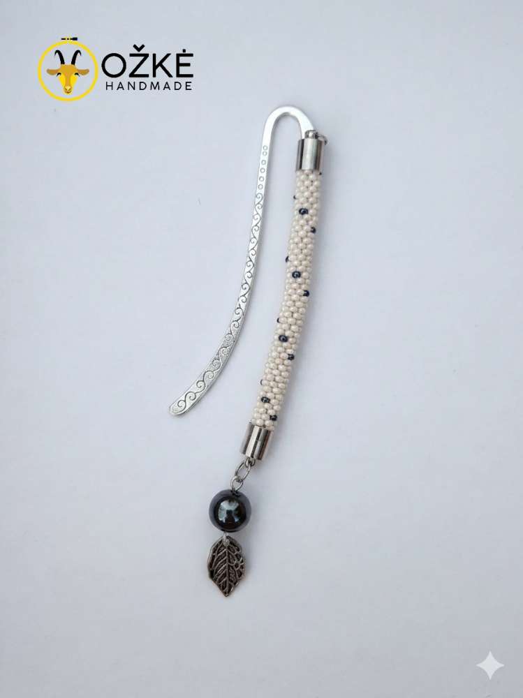 Knygų skirtukas iš čekiško biserio. Nertos dalies ilgis 8 cm.