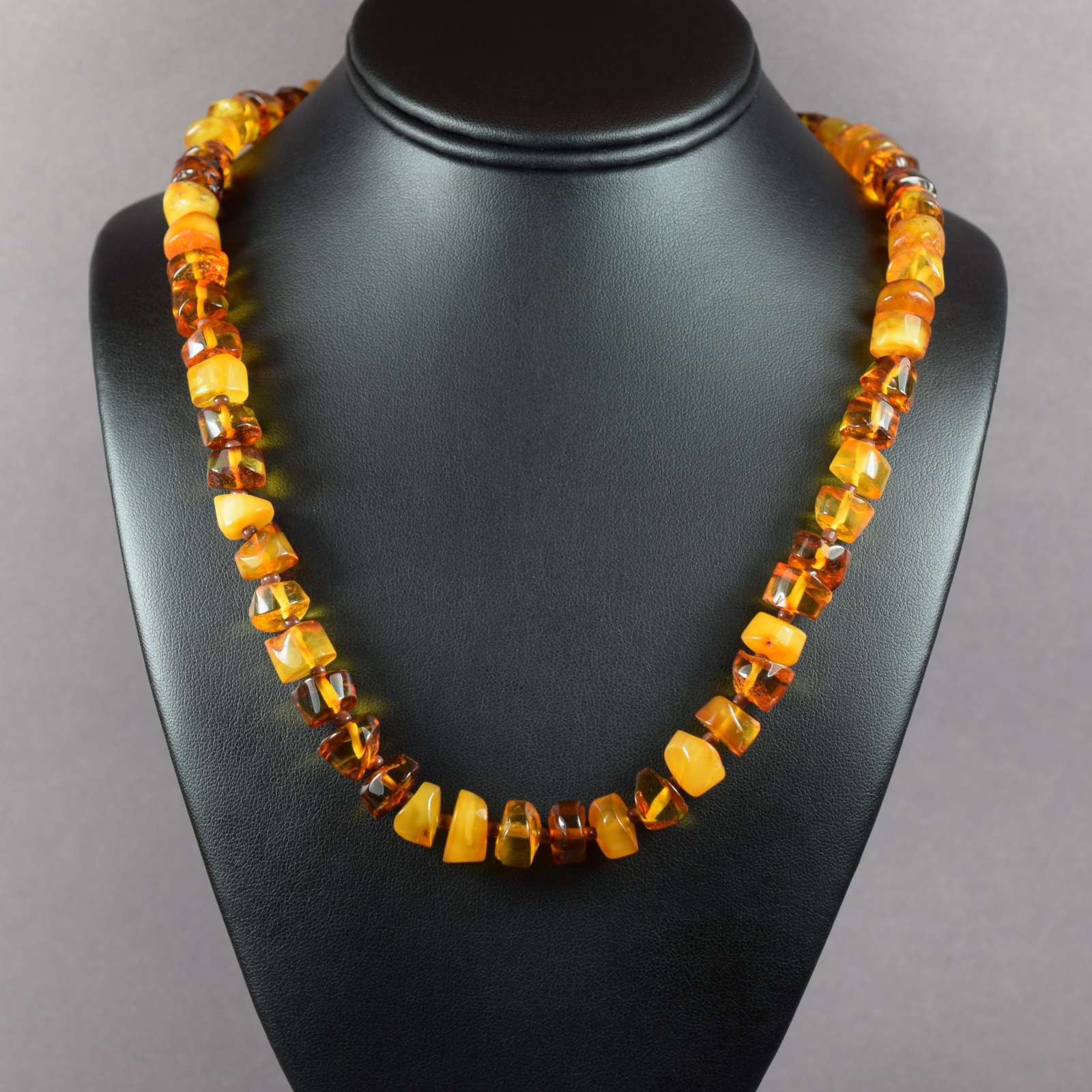 Įspūdingi ir išraiškingi gintariniai karoliai „Medaus šviesa“ – tai natūralaus grožio ir šilumos kupinas papuošalas. Karoliai suverti iš netaisyklingos formos, poliruotų gintaro gabalėlių, kuriuose dera sodrūs konjako, medaus ir aukso atspalviai.