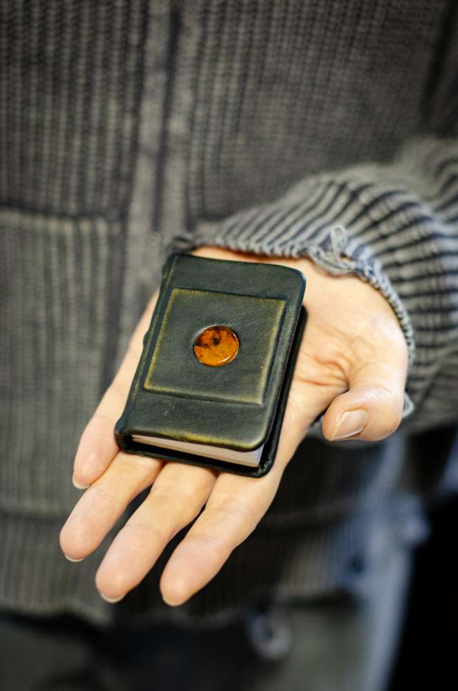 Kiekviena tokia knygutė yra šiek tiek skirtinga – oda, atspalviai ir gintaras niekada nesikartoja identiškai.
