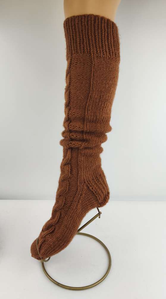 Rankų darbo ilgos (iki kelių) kojinės su merino vilna - ruda