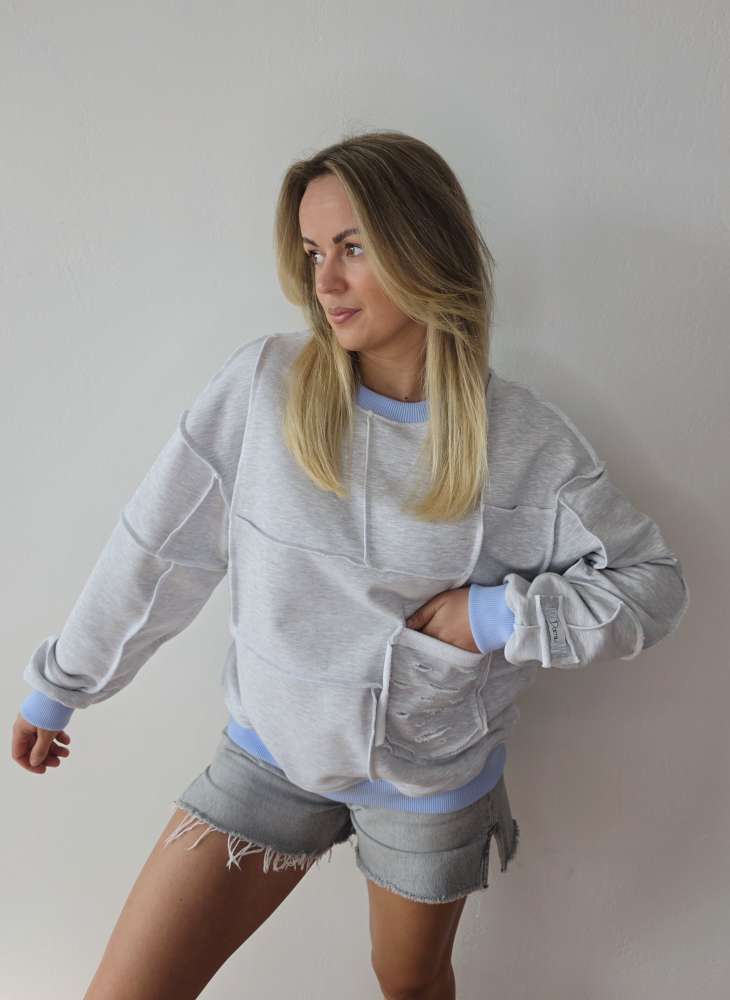Stilingas melanžinis džemperis su melsvomis akcentinėmis detalėmis 🐋