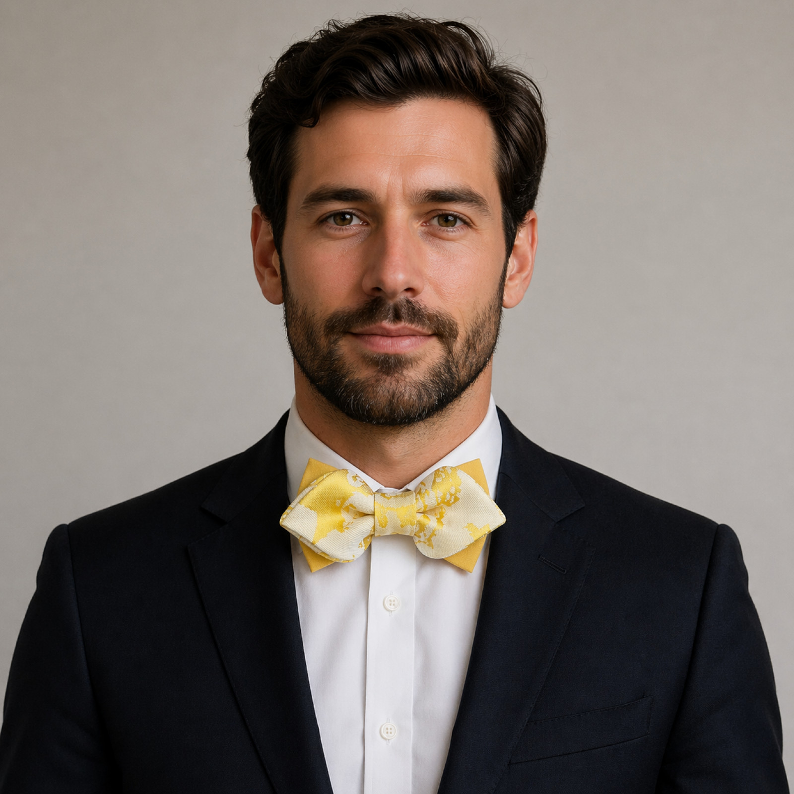 Elegantiška dviejų sluoksnių vyriška peteliškė, kurioje dera sodriai geltonas pagrindas ir šviesus dekoratyvinis audinys su subtiliu ornamentiniu raštu. Švelni spalvų dermė ir išraiškingas raštas suteikia aksesuarui lengvumo bei išskirtinumo, o kruopšti rankų darbo apdaila užtikrina nepriekaištingą formą.