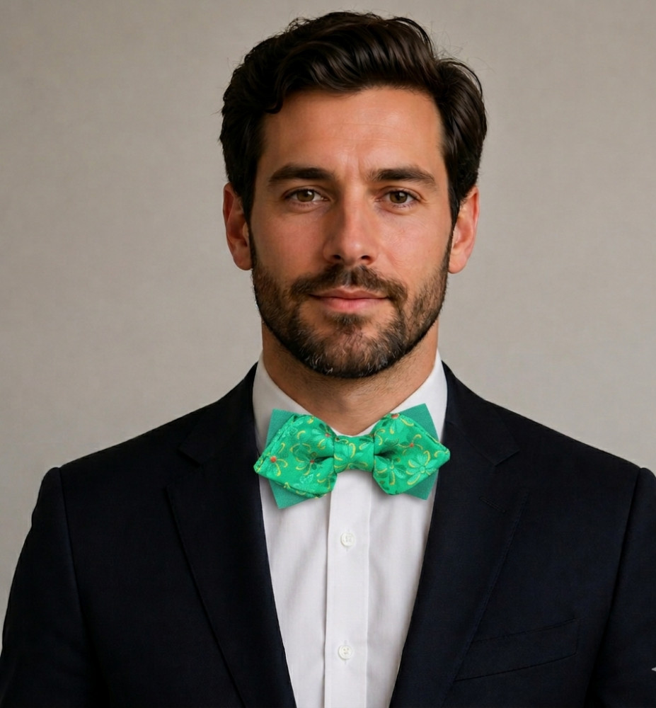 Išskirtinė dviejų sluoksnių vyriška peteliškė, kurioje dera sodriai žalias pagrindas ir dekoratyvinis viršutinis audinys su subtiliu ornamentiniu raštu. Švelniai blizgus žakardas ir kontrastingi akcentai suteikia aksesuarui prabangos pojūtį, o kruopšti rankų darbo apdaila užtikrina nepriekaištingą formą.