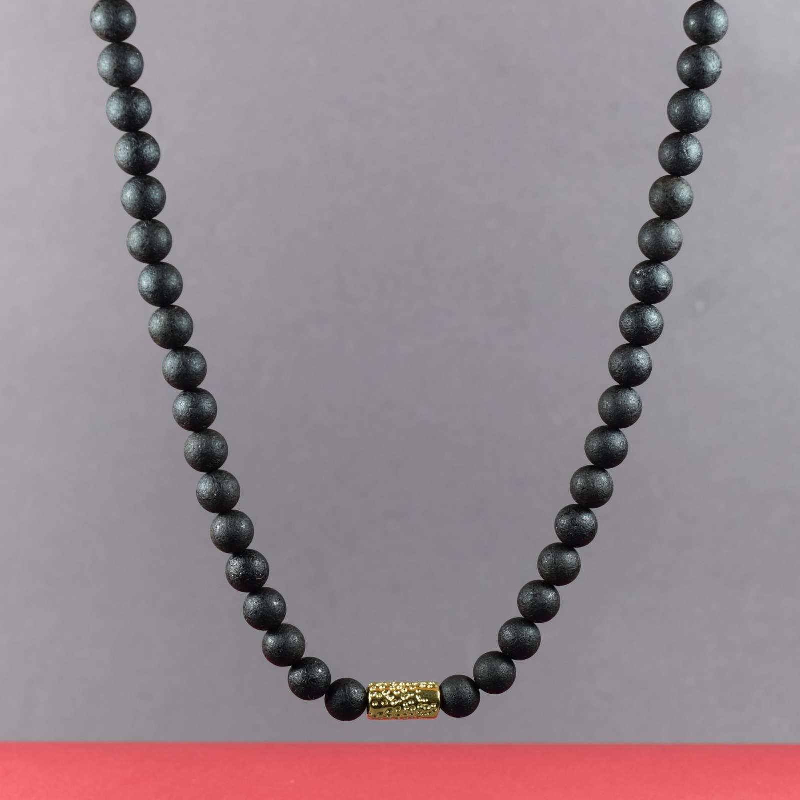 Išskirtinio stiliaus vyriški gintariniai karoliai „Juodasis šerkšnas Gold“ – tai modernus minimalizmas su prabangos akcentu. Karoliai suverti iš matinio juodo gintaro rutuliukų, kurių paviršius primena lengvu šerkšnu padengtą tekstūrą, o centrinė 24k paauksuota detalė suteikia išraiškingumo ir elegancijos.